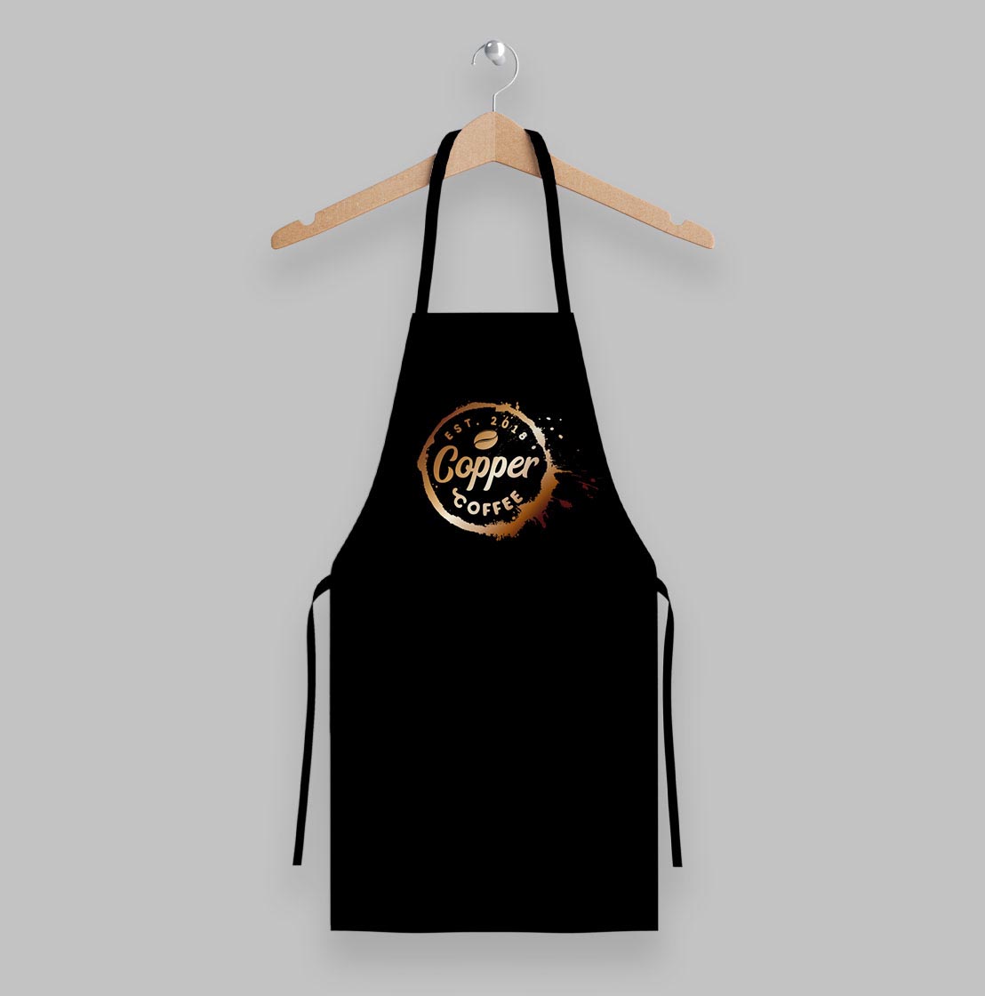 The logo design is based around a coffee stain. The metallic copper colour reflects the bold yet warm personality of the coffee shop. The logo is complex in shape, yet simple enough to use in any branding and marketing material from coffee cups, t-shirts and aprons to online and in-store branding.